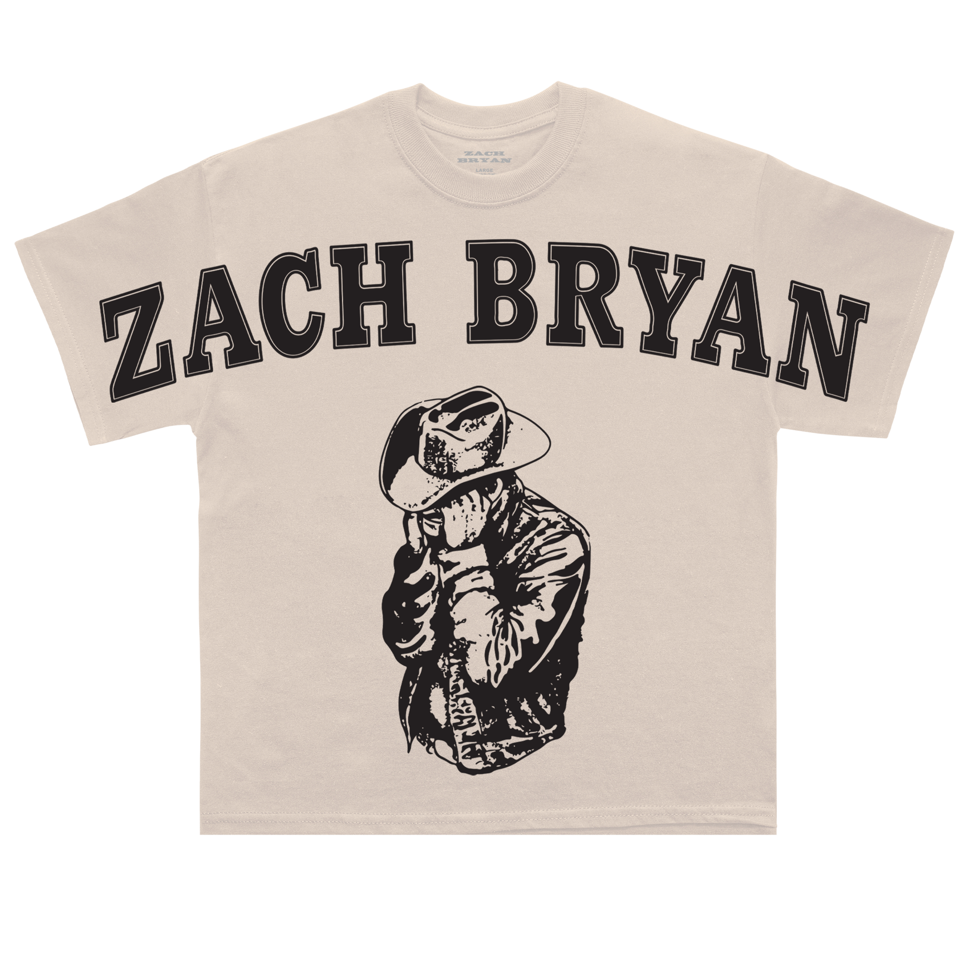 Zach Bryan crying cowboy tee featuring new boxier style.